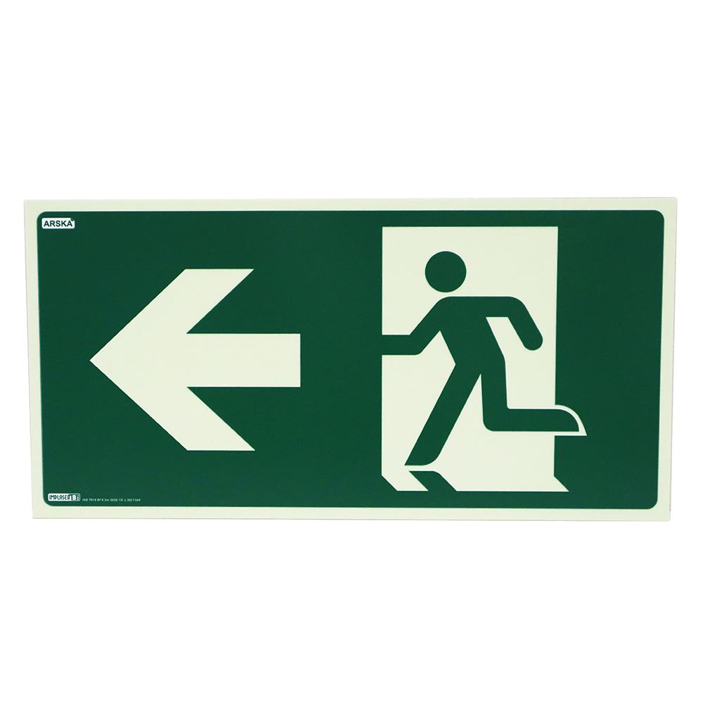 Jälkivalaiseva poistumistieopaste nuoli vasen.