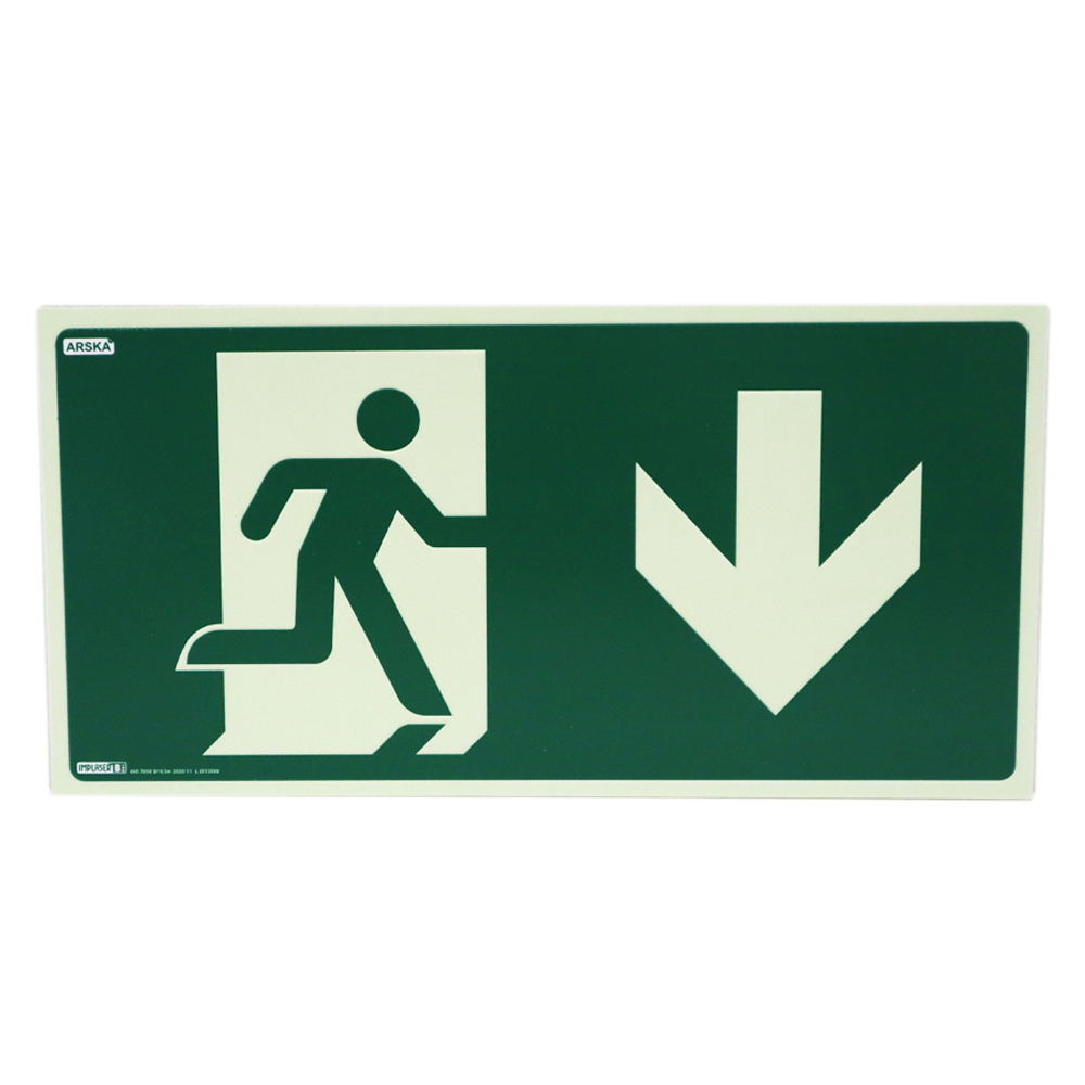 Jälkivalaiseva poistumistieopaste nuoli alas.